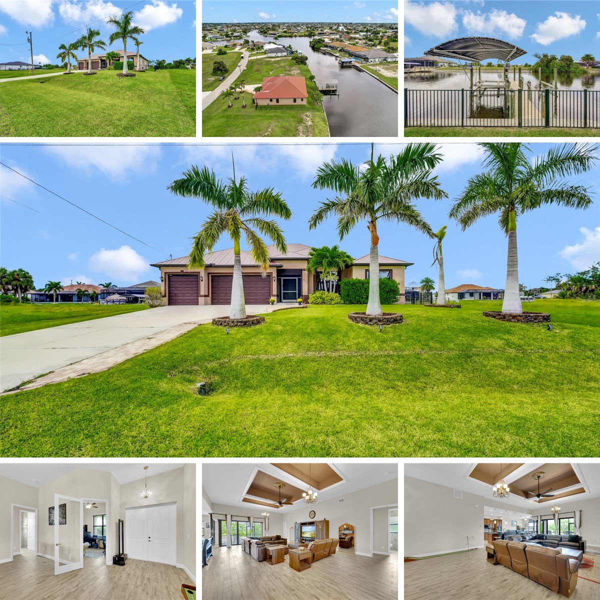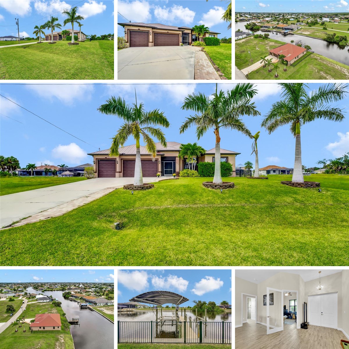 **STEP INTO THIS SPACIOUS HOME WITH OVER 2,800 SQ FT OF LIVING SPACE, ROOM FOR A POOL, NEWER 2019 CONSTRUCTION WITH METAL ROOF, 4-BEDROOMS-PLUS-DEN, 3-CAR GARAGE AND GULF ACCESS** that has all the perks of an enjoyable living space with waterfront access and views. You will certainly enjoy all the waterfront views and watching the sunset from the western rear exposure from the covered lanai. For all the boaters out there, feel secure with the 10,000-pound boat lift and dock that is ready to add a second boat lift right a way. Fishing from the backyard?? No problem! There are the likes of Snook, Tarpan and other variety of fish that you can catch right from the comfort of the backyard. The excitement continues with a quick boat ride to Matlacha and Pine Island which leads straight into open waters of the Gulf. Boat to Sanibel, Cayo Costa, Boca Grande, Charlotte Harbor, and more via the Matlacha Pass. Upon entering the high framed doors, you will be greeted with the wide-open concept of the spacious great room that boasts the highest tray ceilings, wide view of the waterfront through the palatial sliding glass doors and to your left, an ensemble of beauty in the luxury designed kitchen. The private den offers the flexibility of a flex space OR make it into an extra bedroom OR an office. Wow…so many choices! The dining room screams entertaining and hosting of gatherings of family and friends while prepping all meals in the meticulously designed kitchen showcasing granite countertops and all-wood cabinets. Let’s not forget the deep pantry and a DOUBLE OVEN. Yes, DOUBLE OVEN!! All 4-bedrooms are masterfully spaced out with a split-bedroom Floor plan where you can sleep peacefully. Let’s talk about the bedrooms as this home comes with the rare floor plan of having two of the bedrooms are ensuite bedrooms. The sky is the limit with this home. You cannot get any better than this! Other amenities that you will absolutely love: 3-CAR GARAGE, IMPACT WINDOWS THROUGHOUT, SOLAR PANELS, PORTABLE GENERATOR WITH EXTERNAL HOOKUP TO THE HOME, CONCRETE BLOCK CONSTRUCTION, CEILING FANS THROUGHOUT, CONSTRUCTED 2019, MINUTES AWAY FROM BURNT STORE BOAT RAMP.